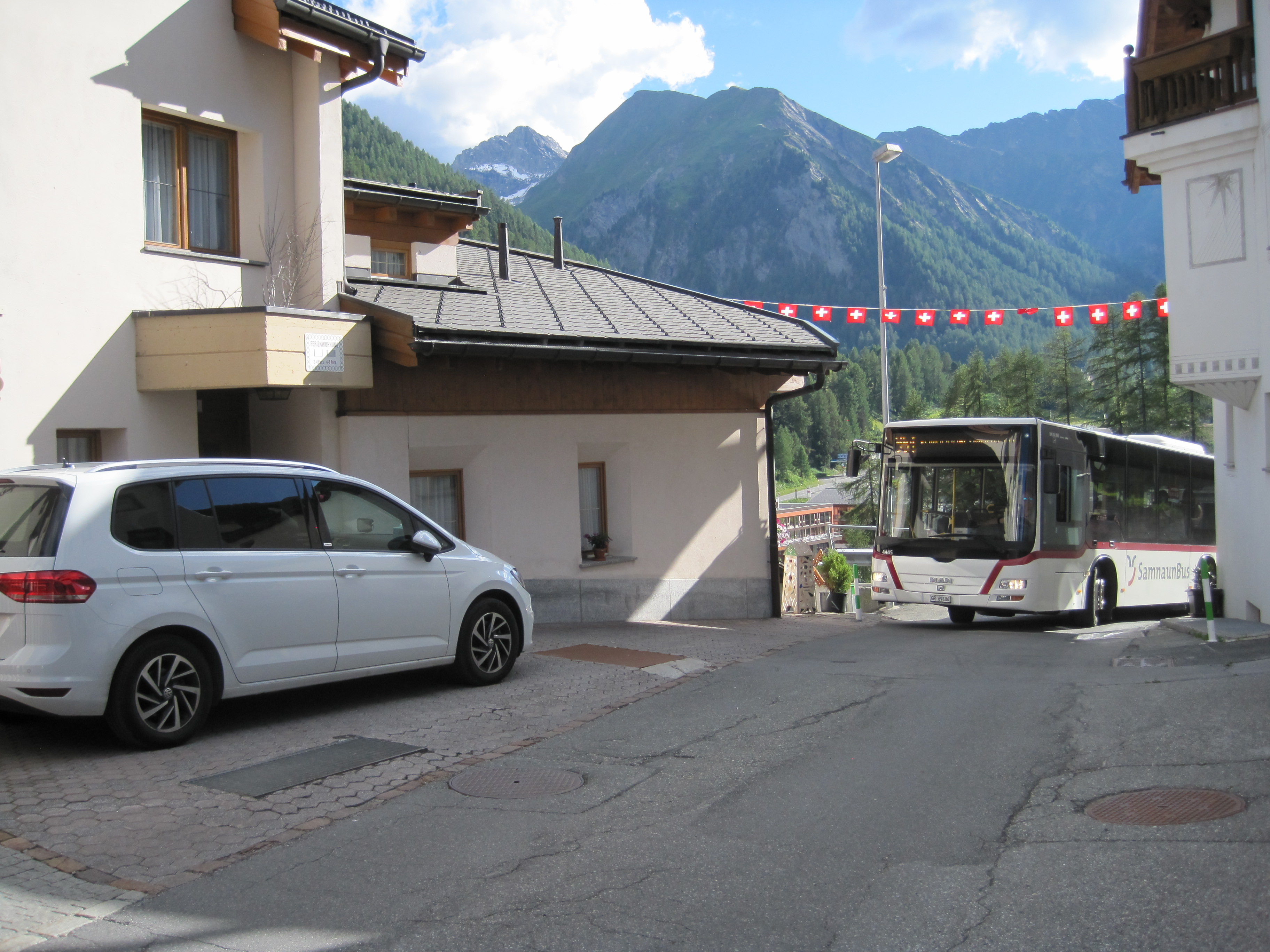Es sind etwa 5 Gehminuten zur Luftseilbahn - bezw. Ortsbushaltestelle 100m (Gratis)